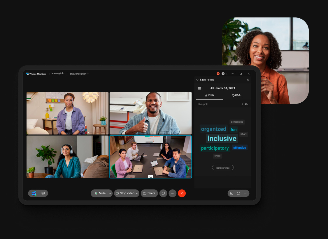 Вы можете легко настроить учетную запись Webex и присоединиться к онлайн-совещаниям. Проводите совещания с коллегами или клиентами вне зависимости от того, где вы находитесь и каким устройством пользуетесь.